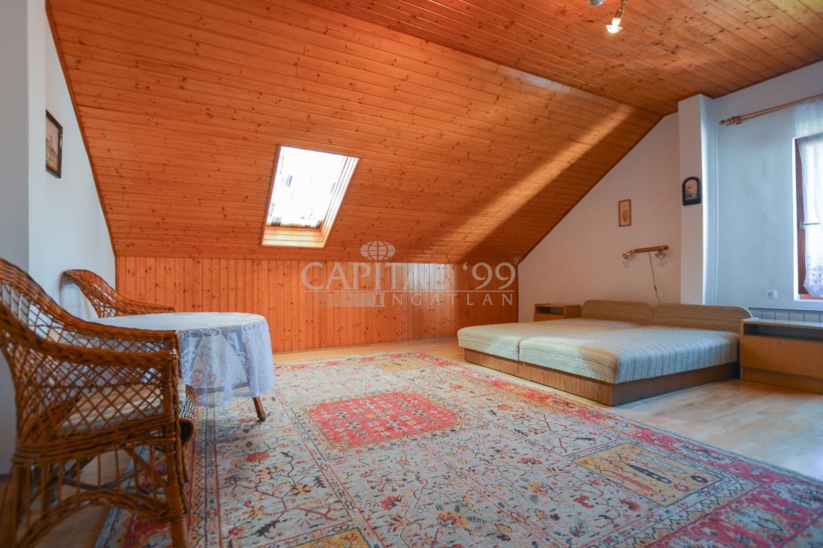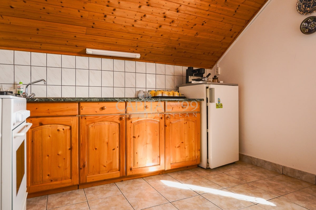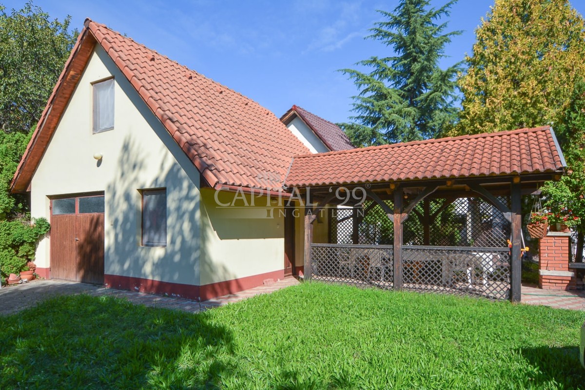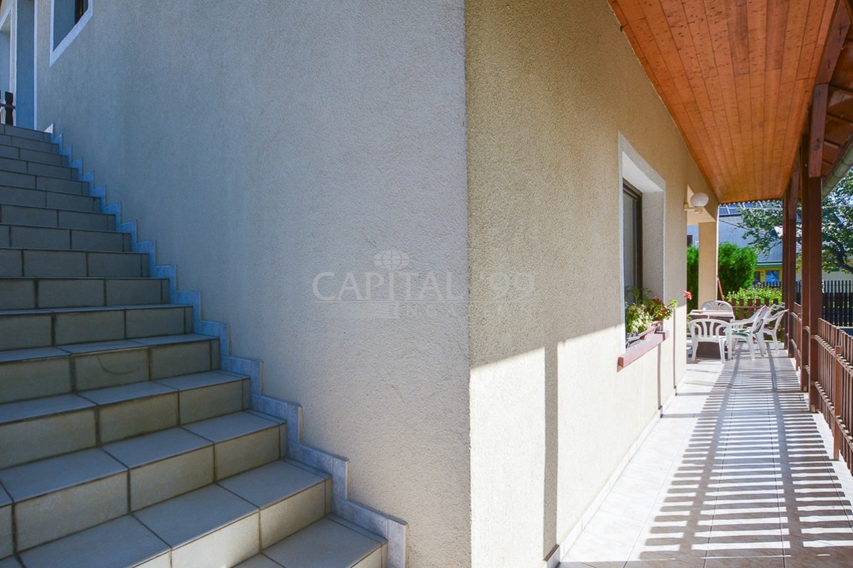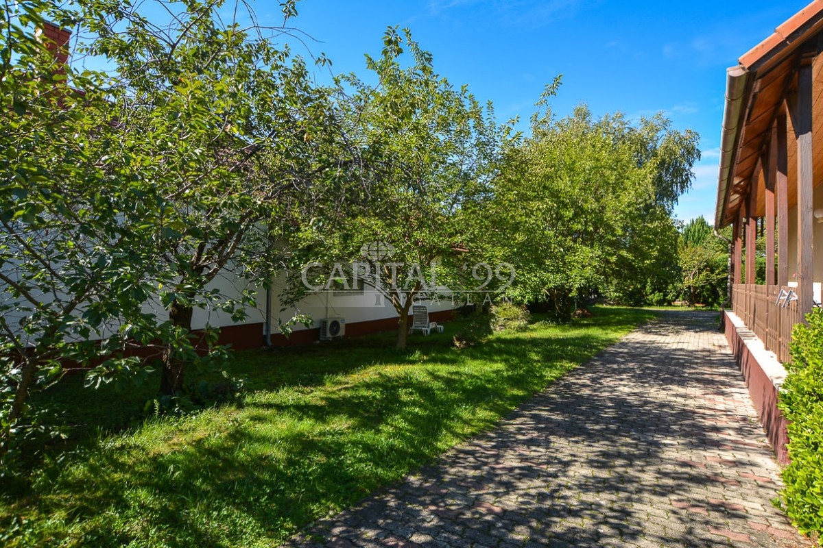Kode: 4334Im Zentrum von Gyenesdiás ist dieses ständig instand gehaltenes Einfamilienhaus mit zwei Wohneinheiten zu verkaufen. Das Haus ist von weitläufigen Innenräumen geprägt. Die zwei Geschöße des Hauses sind durch separate Eingänge zugänglich. Auf beiden Geschößen sind Küche, Badezimmer und Schlafzimmer eingerichtet. Der Garten kommt mit einer Garage und einem Gäste-Apartment mit Küche, Badezimmer + Wc, Schlafzimmer. Das Haus wird über Gaszentralheizung erwärmt, darüber hinaus gibt es im Erdgeschoß ein schöner Kachelofen zwischen dem Wohnzimmer und dem Schlafzimmer. Das Haus ist für Nutzung als ständigen Wohnsitz ideal. Das Grundstück ist liebevoll gepflegt, mit immergrünen Arten und Obsbäumen bepflanzt. Der Plattensee liegt 800 m weit entfernt.