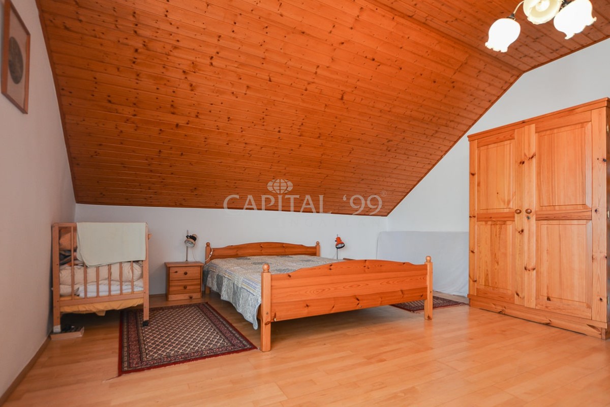 Dachgeschoß: Wohnzimmer 18,80 qm, Schlafzimmer 22,68 qm, Schlafzimmer 18,48 qm, Badezimmer + WC 4,00 qm, Küche + Essraum 9,15 qm, Balkon 5,00 qm.