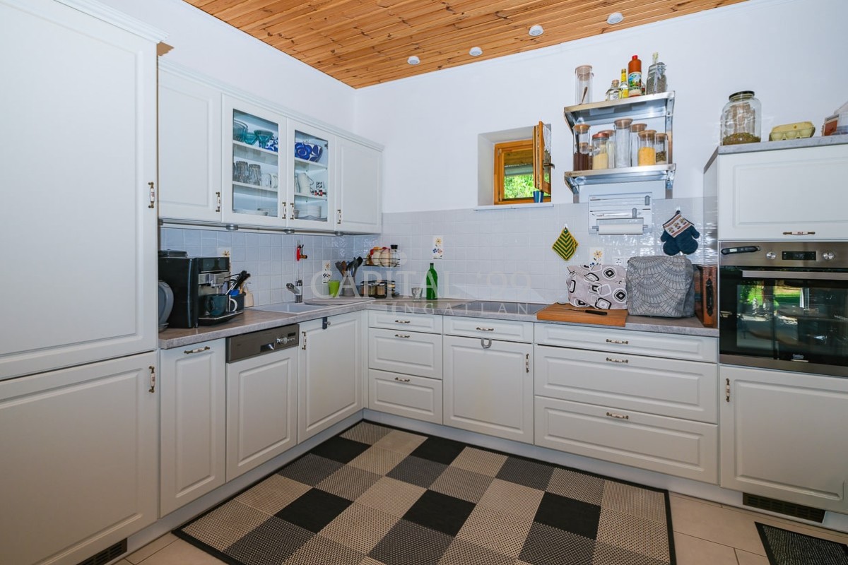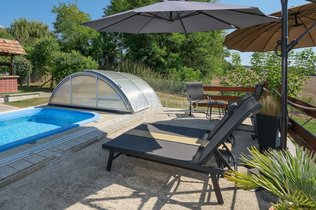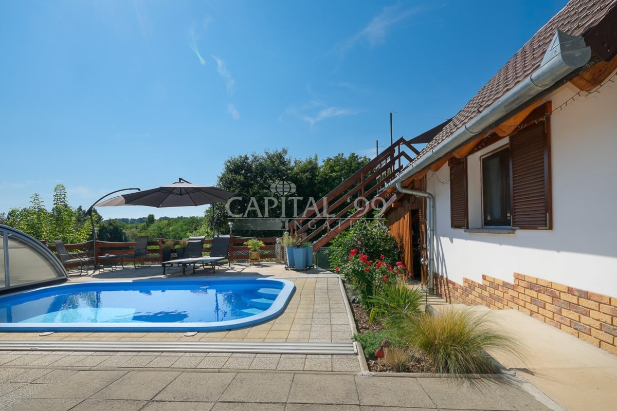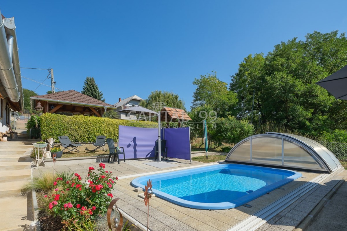 Kode: 4335Allgemeines: In der Siedlung Nemesbük, neben dem weltweit berühmten Thermalbad in Hévíz ist dieses nettes Einfamilienhaus zu verkaufen. Das Haus wurde im zweiten Jahrzehnt des letzten Jahrhunderts gebaut; im Jahre 2014 wurde es vollständig saniert. Während der Sanierung wurde das Haus mit neuem Dach, neuen Fenstern und Türen Innen und Außen ausgestattet. Alle grundlegende Versorgungsleitungen (Wasser, Abwasser, Strom) wurden ausgetauscht. Alle Fliesen und Parkette wurden ausgetauscht, neue Sanitäranlagen wurden eingebaut. Neu ist die Küche, und die Küchengeräte, ein wunderschöner Kachelofen als alternative Heizung wurde gesetzt, das Haus wird ansonsten mit Gaszentralheizung erwärmt. Im Dachgeschoß wurden ein Schlafzimmer, ein Ruhezimmer und eine Arbeitsecke eingerichtet. Das Grundstück ist gepflegt, mit Zierpflanzen bepflanzt. Das Hof kommt mit einem Pool (mit Gegensstromanlage), einer Terrasse und Gartenlaube. Das Grundstück ist mit eigenem Brunnen ausgestattet, der für Gartenbewässerung geeignet ist.