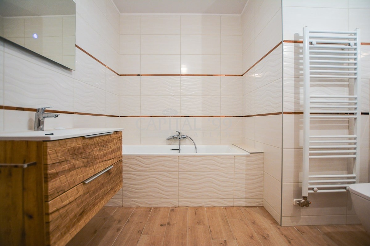 Fußbodenbeläge: Laminat, Keramikplatten.
