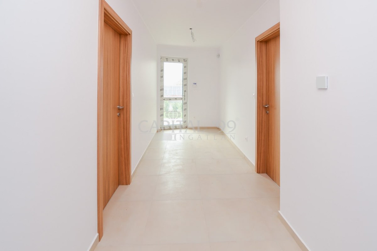 Wohngeschoß: Garage 17,08 qm, Zimmer 12,00 qm, Garderobe 2,72 qm, Badezimmer + WC 4,08 qm Vorraum 9,00 qm, WC 1,66 qm, Küche 6,09 qm, Wohnzimmer + Essraum 27,56 qm, Balkon 15,29 qm.