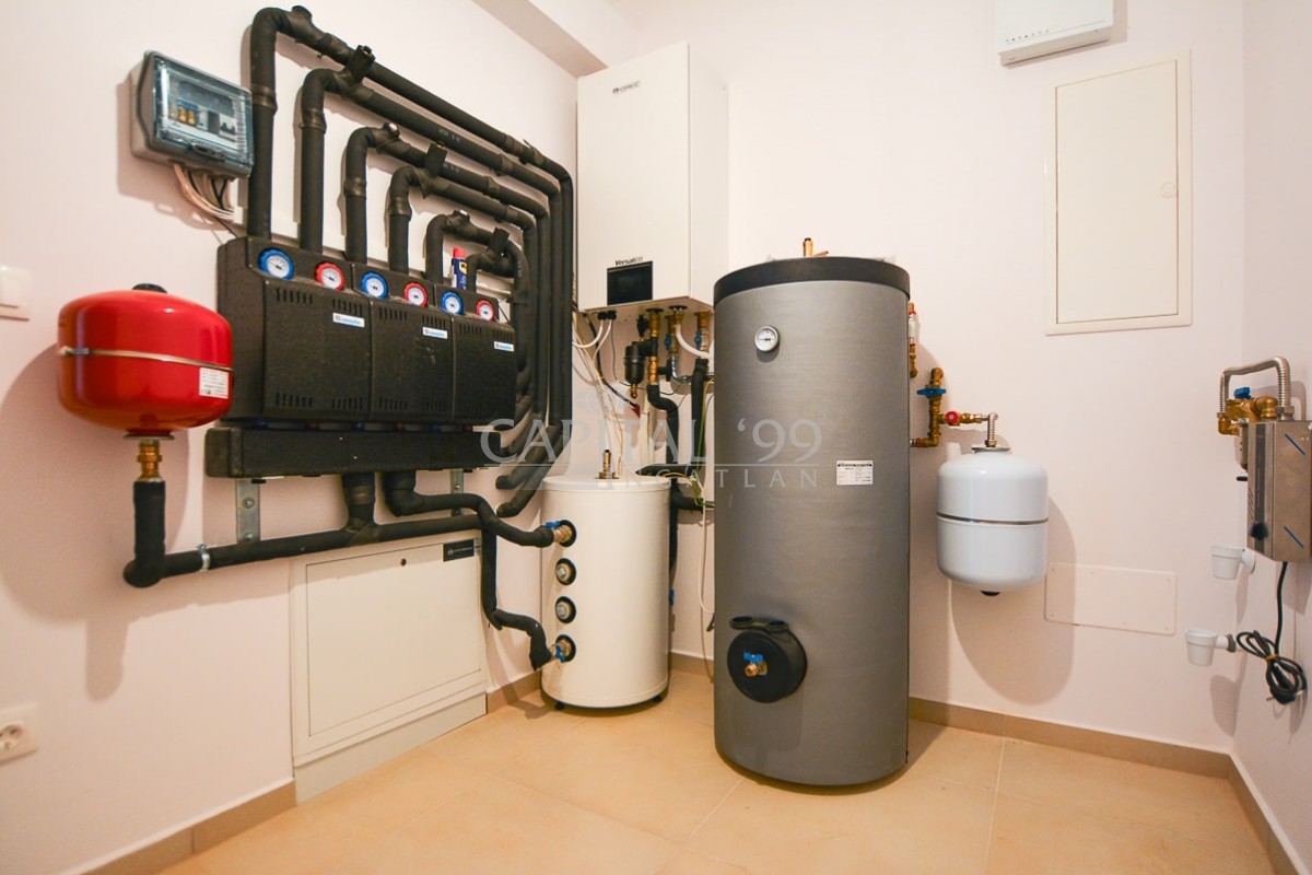 Heizungsart: Wärmepumpe + Fan coil Fußbodenheizung.
