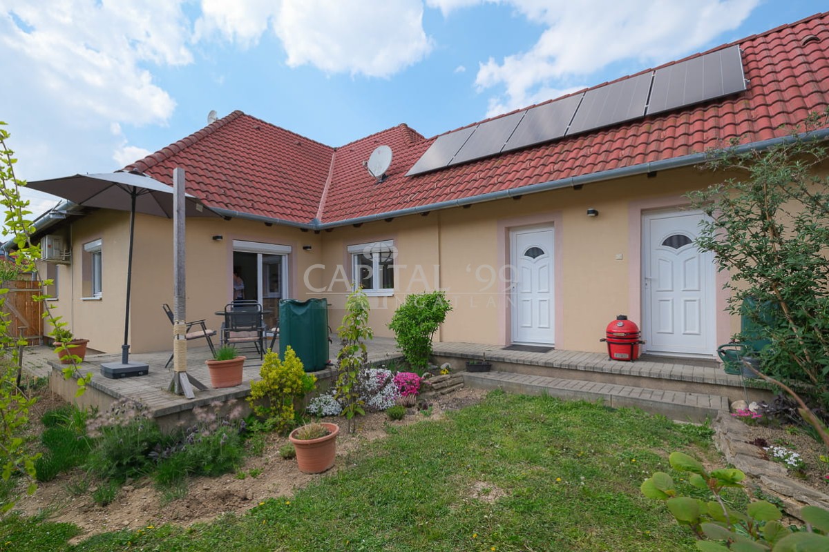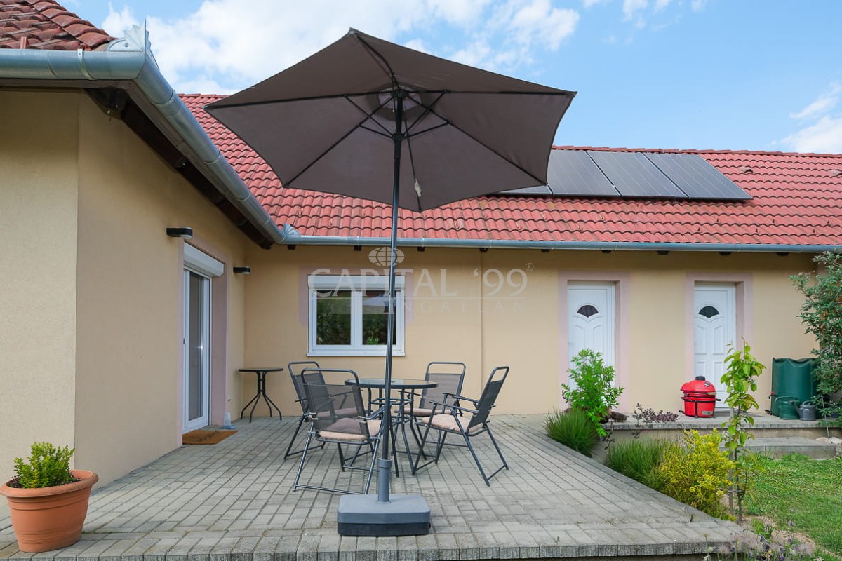 Wir bieten dieses, im Jahre 2015 errichtetes Wohnhaus in ausgezeichnetem Zustand, gelegen im Zentrum, trotzdem in ruhiger Nebengasse von Cserszegtomaj zum Verkauf. Das Haus liegt auf einem 800 qm großen, gut gepflegten, umgezäunten Grundstück mit besonderer Atmosphäre dank einem anspruchsvollen Zierzaun, dem gepflegten Rasen, den Obstbäumen und Zierpflanzen.
