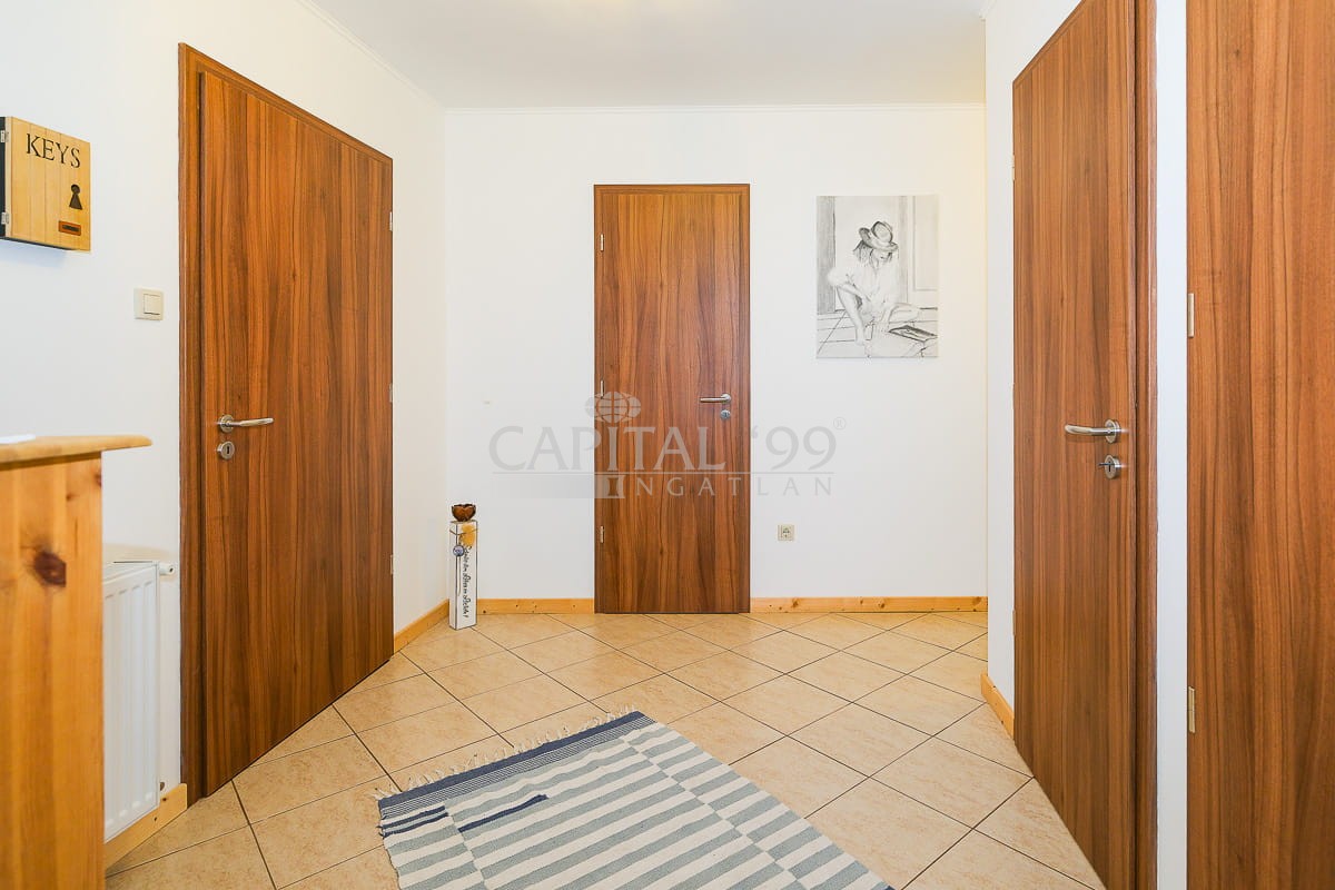 Die Lage ist ausgezeichnet: es liegt im Zentrum der Siedlung, so alle wichtigen infrastrukturellen Einrichtungen – Schule, Kindergarten, Kinderkrippe, Einkaufsladen, Bushaltestelle – sind leicht erreichbar. In der geordneten Umgebung sind wertvolle, neuwertige Gebäude zu finden.