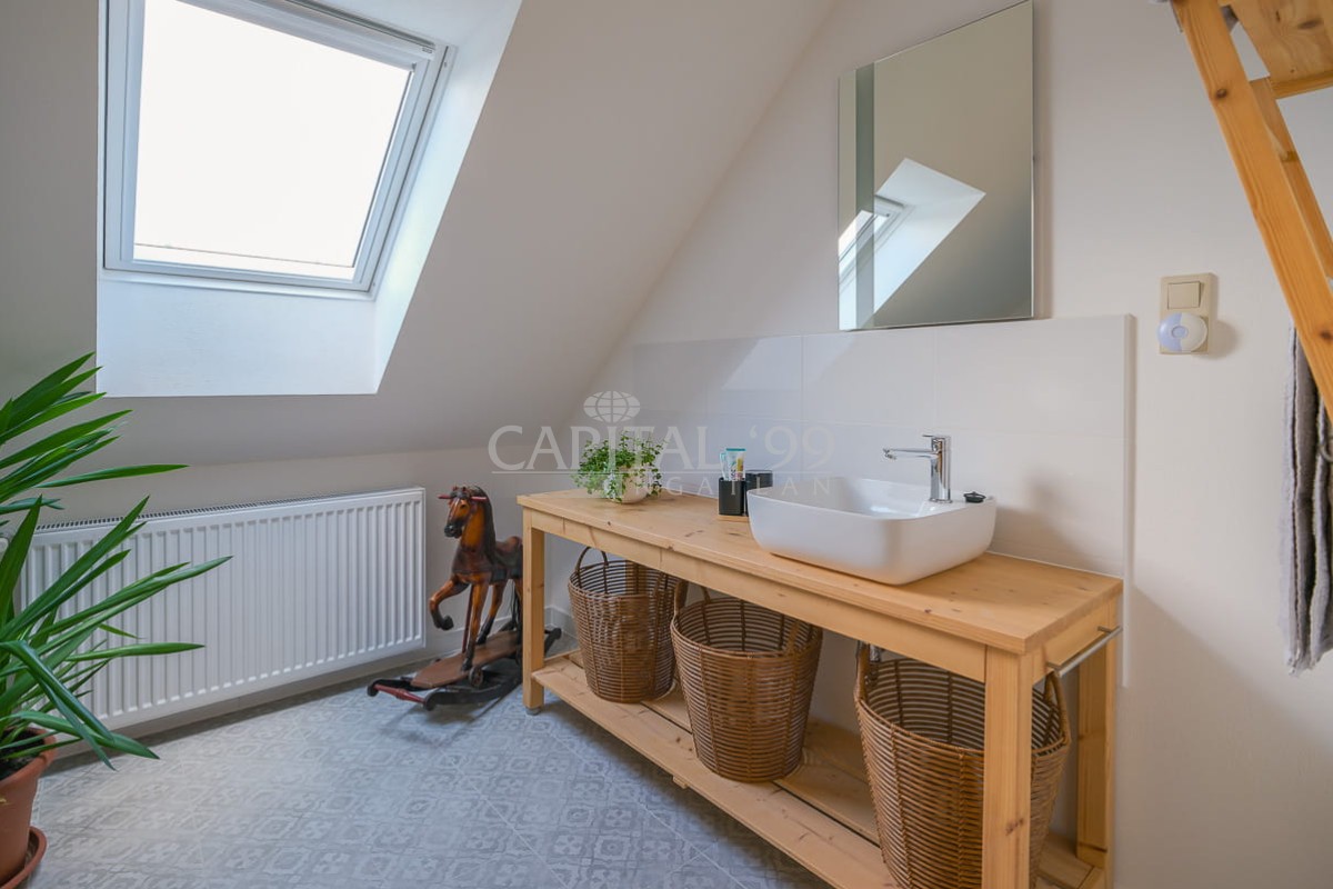 Der technische Zustand des Hauses ist einwandfrei, es wurde ständig instand gehalten. Dank seiner energieeffizienten Ausgestaltung sind die Erhaltungskosten günstig: es wird mit moderner Gastherme über Radiatoren erwärmt, darüber hinaus ist auch ein großzügiger, Holz betriebener Kachelofen vorhanden. Für den Sommermonaten stehen zwei Klimaanlagen (geeignet für Kühlung aber auch für Heizung) zur Verfügung, die während Übergangszeiten auch für selbstständige Heizung geeignet sind.